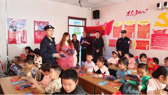 普法课堂结束后,司法所工作人员为孩子们发放了印有“少年兴则中国兴,少年强则中国强”字样的精品文具盒和笔记本等小礼品,让法治的种子在孩子们心中生根发芽。