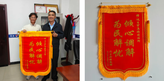 近日,达日罕乌拉司法所收到了一面印有倾心调解 为民解忧的锦旗,赠送者是此前草牧场纠纷的当事人乃某。这面锦旗不仅承载着群众的感激之情,更是对司法所调解工作的高度认可。