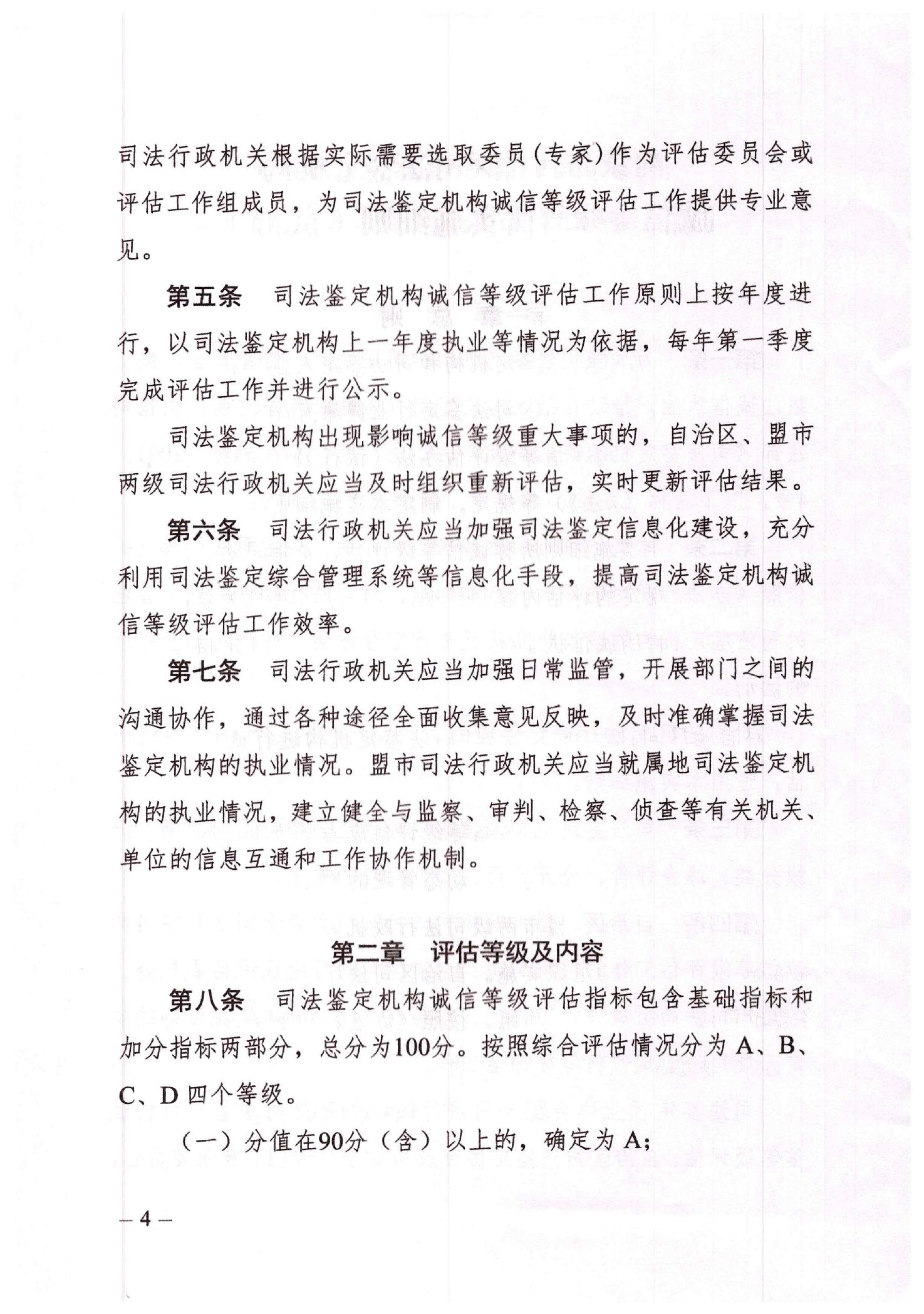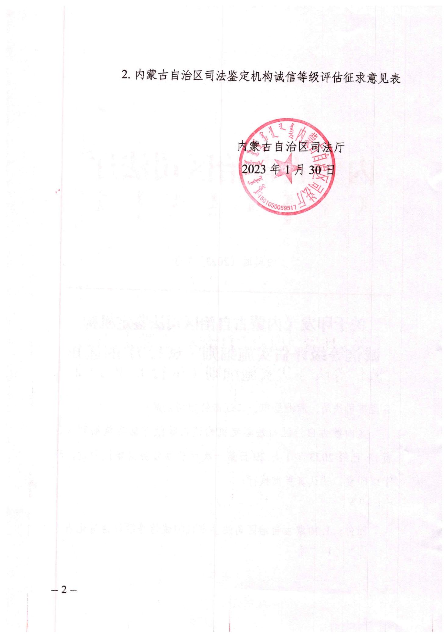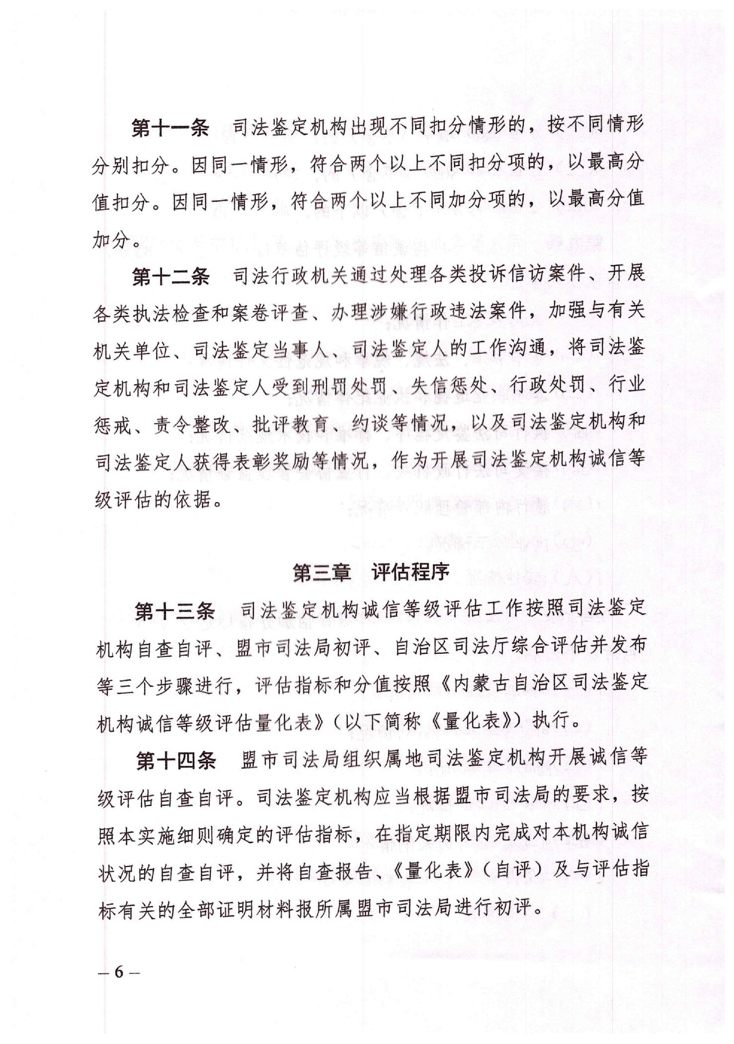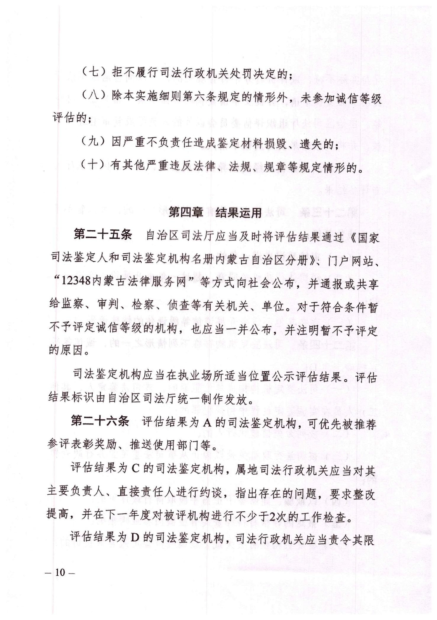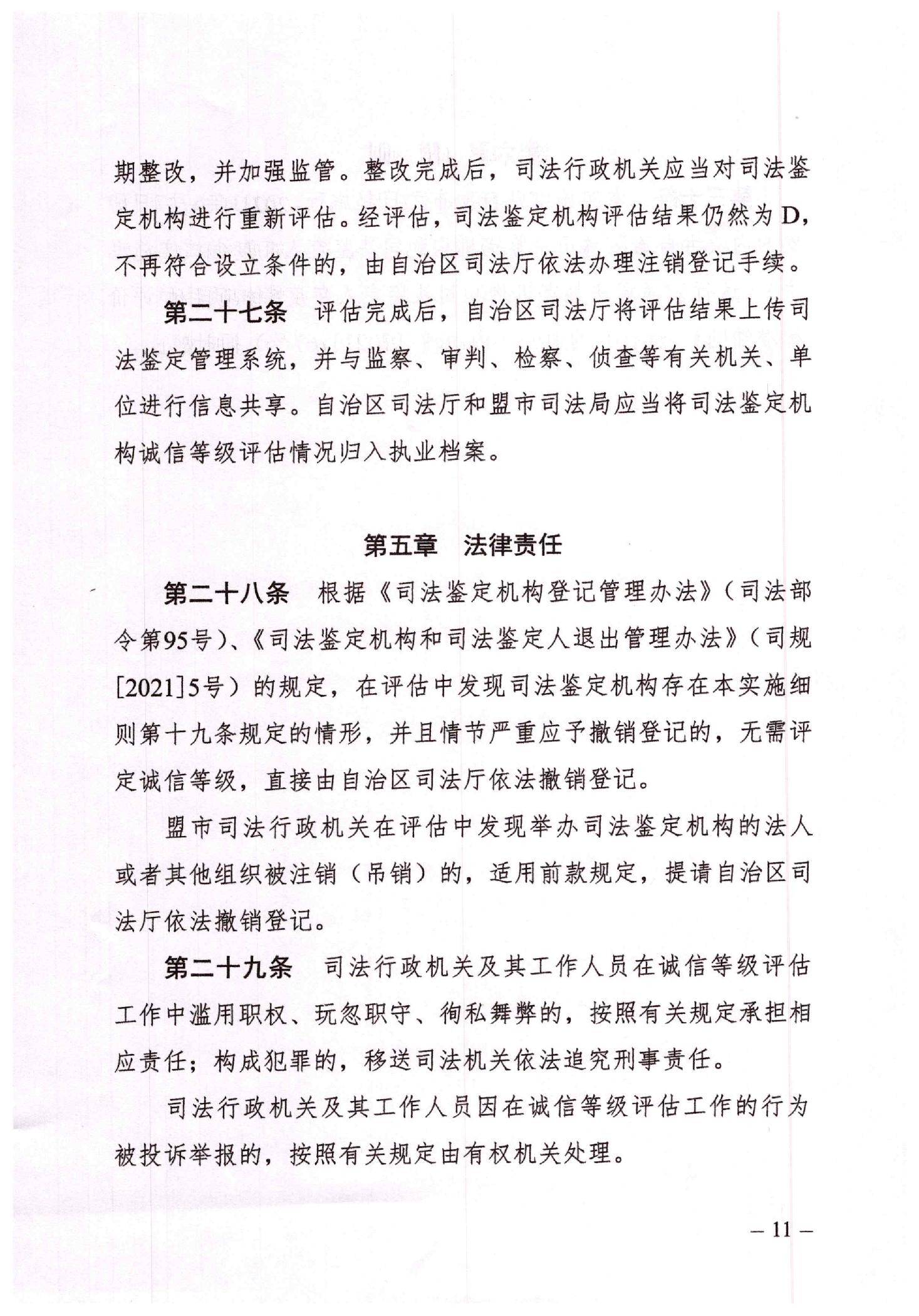 关于印发《内蒙古自治区司法鉴定机构诚信等级评估实施细则(试行)》的通知