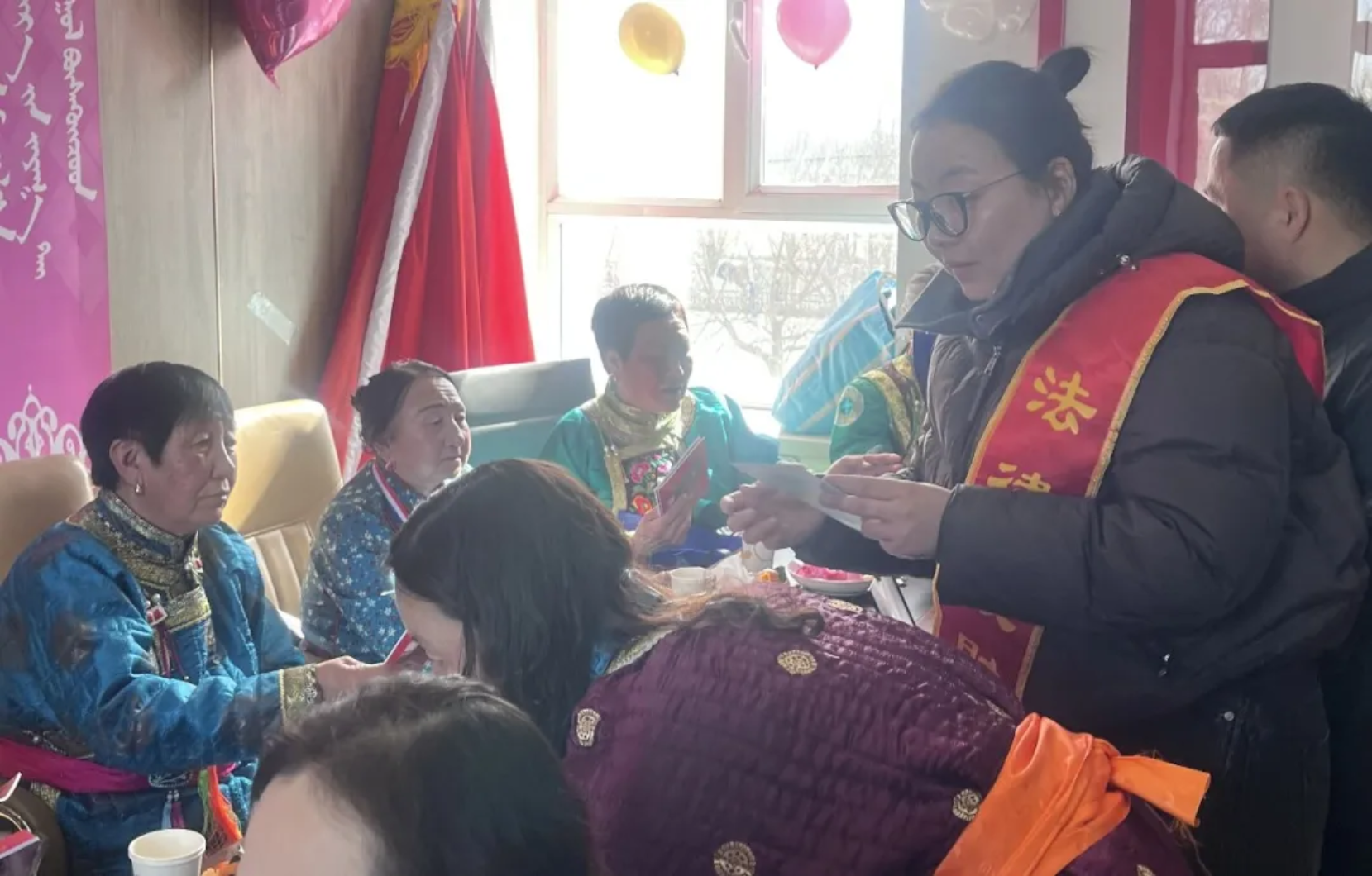 活动现场采取悬挂宣传条幅、设立法律咨询台、发放汉蒙双语宣传手册、现场答疑解惑的形式,普法工作人员紧密围绕牧区妇女日常生产生活关切的重点问题,精准宣讲法律法规及维权政策,重点讲解《中华人民共和国妇女权益保障法》《中华人民共和国民法典》婚姻家庭编、《中华人民共和国反家庭暴力法》以及法律援助相关规定。